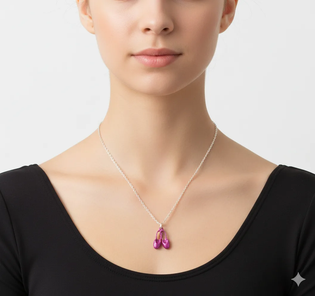 Este precioso colgante de punteras en miniatura representa a la perfección el calzado característico de las gimnastas, con su inconfundible silueta y lazo.