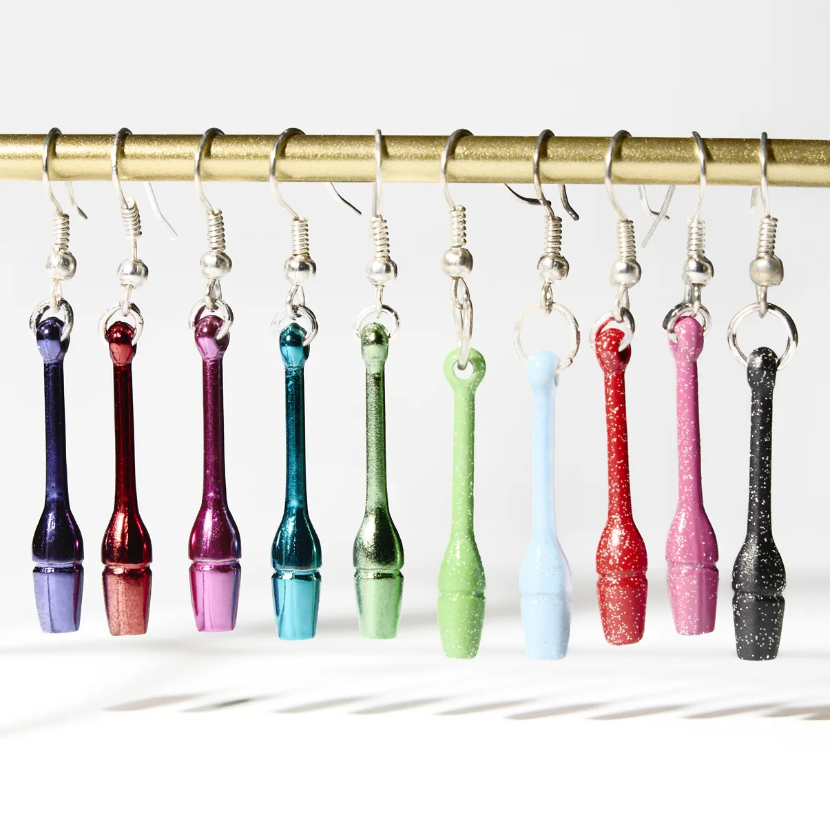 Estos pendientes en forma de maza de gimnasia rítmica son el complemento perfecto para llevar tu deporte favorito siempre contigo.